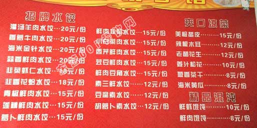 東營青島餃子館,位于金鄉(xiāng)路石大花園北門西50米,訂餐電話:13181953338,主營,商家特色:,經(jīng)典菜品為:,商家就餐環(huán)境優(yōu)美,特別適合,歡迎光臨!