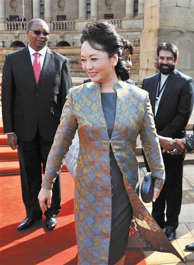 3月26日,南非比勒陀利亞,彭麗媛的著裝引發(fā)“中國(guó)風(fēng)”熱議。