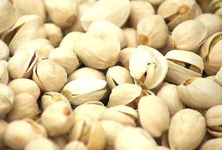 開心果的表皮本應(yīng)是黃褐色的,白色的開心果其實是經(jīng)過加工了的。