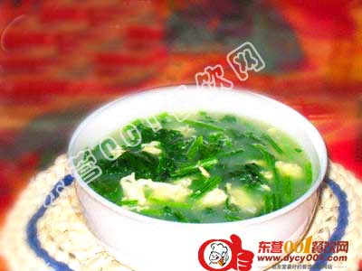 原料:菠菜150克、雞蛋1個(gè)、胡蘿卜15克 調(diào)料:花生油、鹽、味精、蔥姜絲 做法: 1、將菠菜洗干凈,切段;胡蘿卜去皮,洗凈,切成絲;雞蛋磕入碗中,攪勻備用。 2、凈鍋置火上,倒入花生油燒熱,下蔥姜絲爆香,放入胡蘿卜絲、菠菜煸炒,倒入水,調(diào)入鹽、味精燒沸,淋入蛋液,稍煮即可。