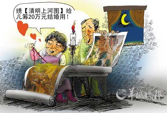 她通過媒體得知,跟她繡的一樣的《清明上河圖》十字繡曾拍賣出30多萬元的價錢。她想給兒子在鄂州買一套房子結婚,愿意作價20萬元賤賣這幅《清明上河圖》。