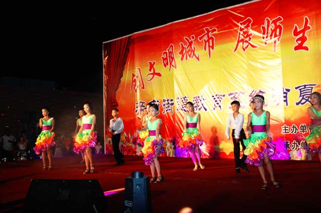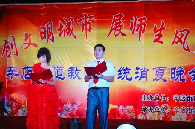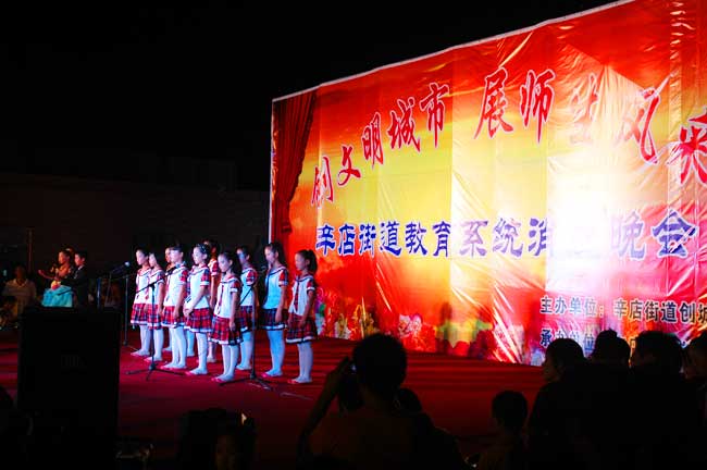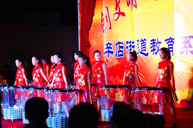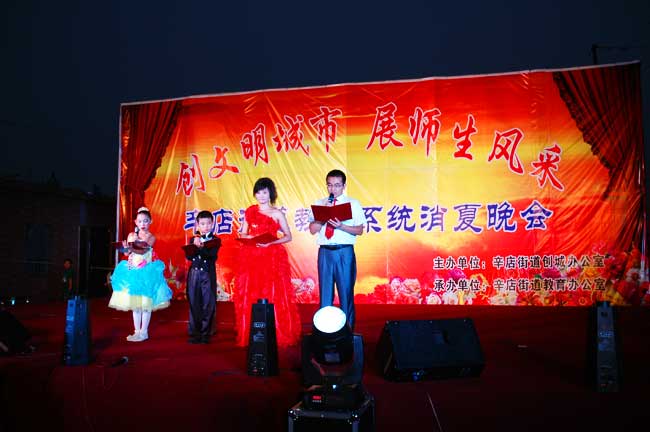 本次晚會(huì)規(guī)格較高,搭建了專業(yè)的演出舞臺(tái),設(shè)置了專業(yè)的音響、燈光系統(tǒng)。今晚是演出的首場(chǎng),節(jié)目?jī)?nèi)容豐富多彩,有大型舞蹈、樂(lè)器表演、相聲、歌伴舞,尤其是由辛店街道中學(xué)水鼓隊(duì)表演的大型水鼓,氣勢(shì)龐大、精彩紛呈、把整臺(tái)晚會(huì)推上了最高潮。本次系列晚會(huì)共分三個(gè)晚上,每晚的節(jié)目都將非常精彩,從而全面展示了實(shí)施素質(zhì)教育以來(lái)取得了豐盛成果。